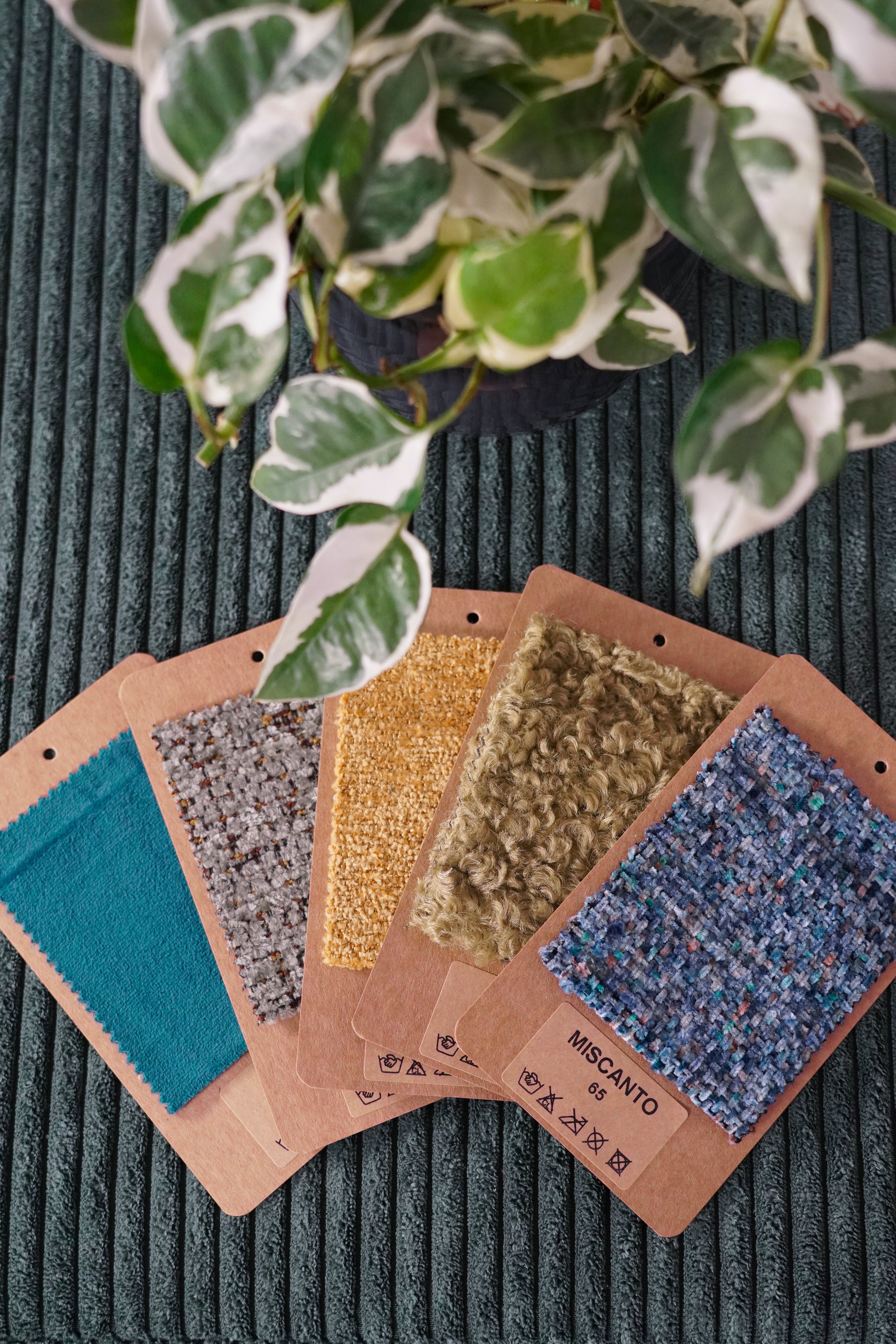 Each fabric has its own care pictograms (washing, ironing, cleaning). You'll find them on the product card and in the materials included with the samples.