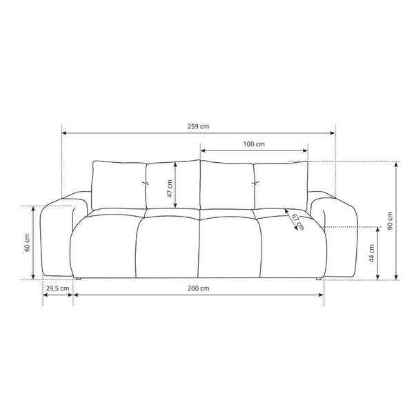 Sofa 3-osobowa z funkcją spania 149x200 z pojemnikiem w stylu nowoczesnym – automat wspomagający | SOSO